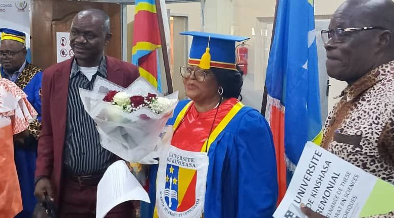 L’Université de Kinshasa -UNIKIN- a sacré une nouvelle voix de la recherche en République Démocratique du Congo mardi 17 mars. Anne‑Marie Akwety a été proclamée docteure à l’issue d’une soutenance brillante de sa thèse intitulée «Les cadres féminins du Mouvement Populaire de la Révolution, 1967‑1980: Contribution à l’étude de la première élite féminine de la République Démocratique du Congo». Une consécration qui sonne comme la reconnaissance d’un pan ignoré de l’histoire politique nationale.