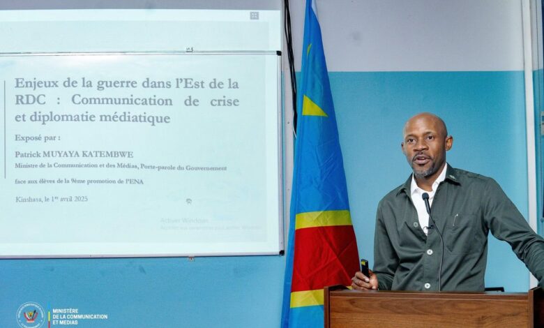 Ce mardi 1er avril au siège de l’Ecole nationale d’administration -ENA-, le ministre de la Communication et Médias et porte-parole du gouvernement, Patrick Muyaya Katembwe, a échangé avec les élèves fréquentant cet établissement d’élite. Au cœur du débat, un seul point important, à savoir: «Enjeux de la guerre dans l’Est de la RD-Congo: Communication de crise et diplomatie médiatique». Dans un auditorium plein comme un œuf, le Directeur général de cette école chargée de la formation de hauts cadres de l’Administration publique, Cédric Tombola Muke, a insisté sur l’investissement dans le capital humain et dans le capital intellectuel pour avoir une nation forte.