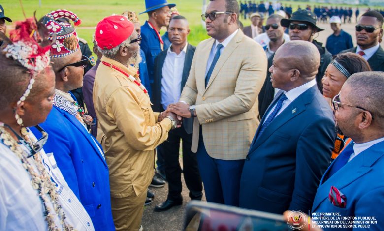 Accueilli chaleureusement par les autorités politico-administratives, les élus de la province, les fonctionnaires ainsi que par la population venue nombreuse, le patron de la Fonction publique RD-congolaise a, dès son arrivée, fixé les esprits sur sa mission, dont l’objectif essentiel est de renforcer l’ancrage de la réforme au niveau local, de vulgariser ses avancées et de répondre aux préoccupations concrètes des agents publics.