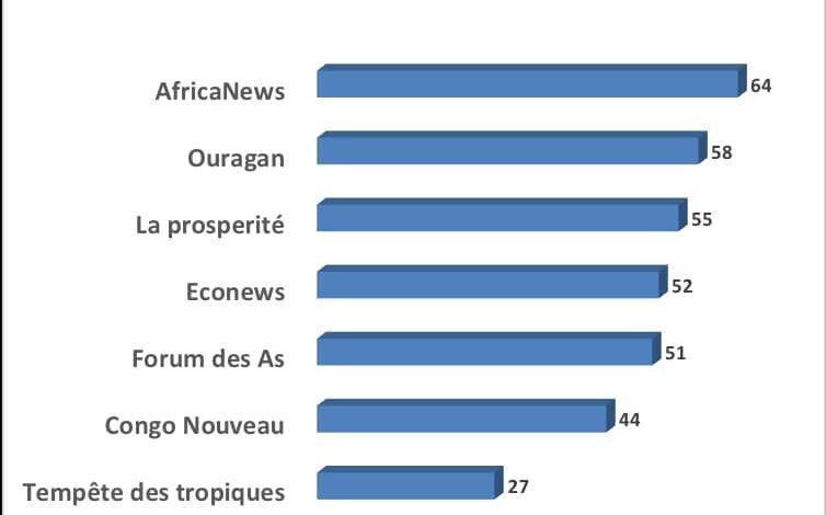Les résultats montrent un net déclin des médias classiques. Bien qu’elle reste le deuxième média le plus consulté -48%-, la radio souffre de la disparition de nombreuses stations. Top Congo FM résiste et domine encore avec 90 % de part d’audience. Classée en troisième position avec 46 %, la télévision conserve un attrait lors de grands événements, notamment sportifs et politiques. La télévision numérique terrestre -TNT- reste le mode d’accès privilégié -73%-, loin devant les chaînes payantes -27 %. En chute libre, avec moins de 0,5 % de journaux encore imprimés, la presse écrite arrive au bas du classement mais paraît n’avoir pas dit son dernier mot.