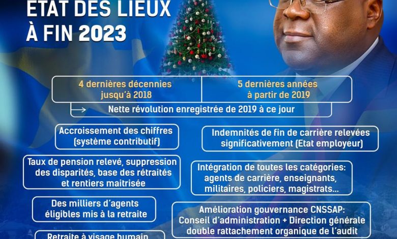 Forte de toutes ces avancées et à l’aube de l’année 2024, la CNSSAP, ambitieuse, se promet désormais de « consolider les acquis ». Les deux animateurs ont également profité de l’occasion pour présenter, au nom de tout le personnel de la CNSSAP, des vœux de santé, bonheur et succès au Chef de l’État Félix-Antoine Tshisekedi, avec lui le gouvernement, les chefs de corps constitués mais aussi l’ensemble du peuple congolais.