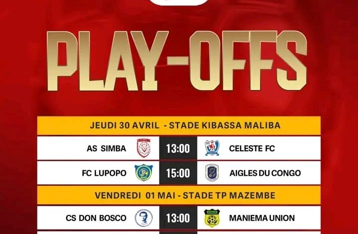 La Ligue nationale de football -LINAFOOT- a dévoilé, samedi 25 avril 2026, le calendrier de la phase des play-offs avec de belles affiches dès la première journée. Pour ce dernier virage de la saison sportive 2025-2026, le Tout-puissant Mazembe croisera le fer avec l’AS V.Club, vendredi 1er mai au stade TP Mazembe de Lubumbashi. Après avoir traversé une saison blanche, Mazembe, club le plus titré du pays, aura à cœur de frapper fort dès la première journée devant son public. Sérieux avec une équipe remaniée, les Corbeaux veulent coûte que coûte remporter le trophée de la Ligue 1 pour retrouver la scène africaine.